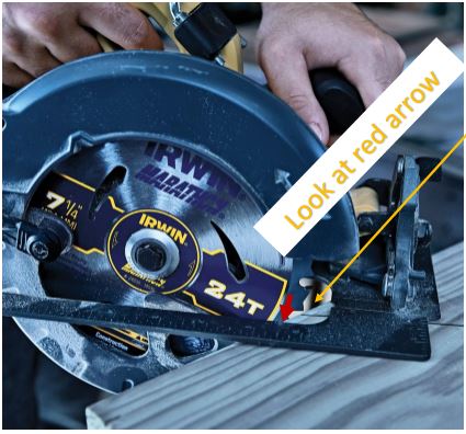 3. So that your circular saw cuts in a straight line, measure the distance from your saw’s blade to its protective edge (see pic 1 below). For our saw the distance was 1.5 inches.
