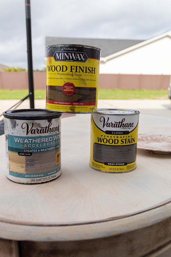 I really wanted to bring out this table’s beautiful grain. I like using stain accelerator for this purpose. Stain accelerator does just that—it helps the wood absorb the stain more quickly. This keeps stain from seeping in slowly and tinting everything at once. Instead, the larger veins in the wood become more pronounced and the rest is more subtly stained.